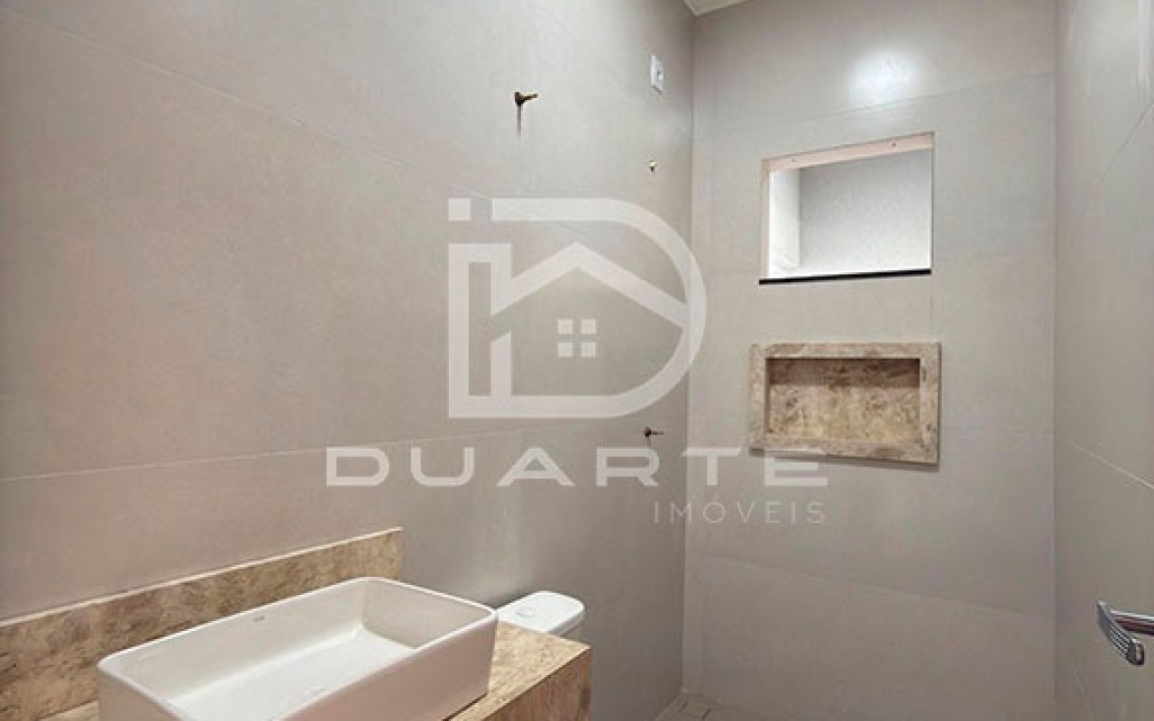 - A casa possui porta de acesso em alumínio, iluminação em LED, porcelanato 81x81, cerca elétrica, interfone, passagem para ar condicionado e gás encanado.