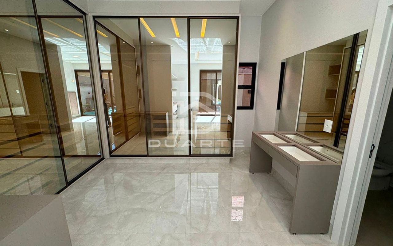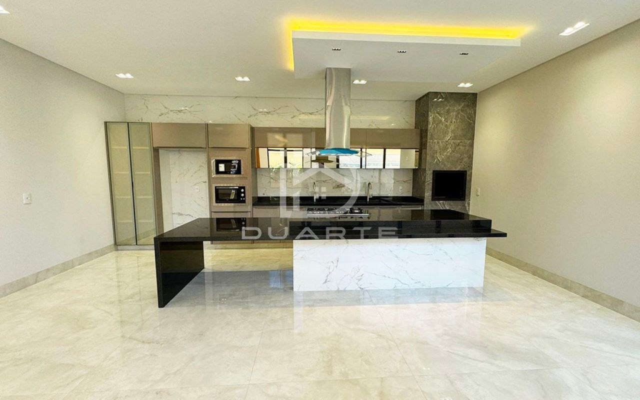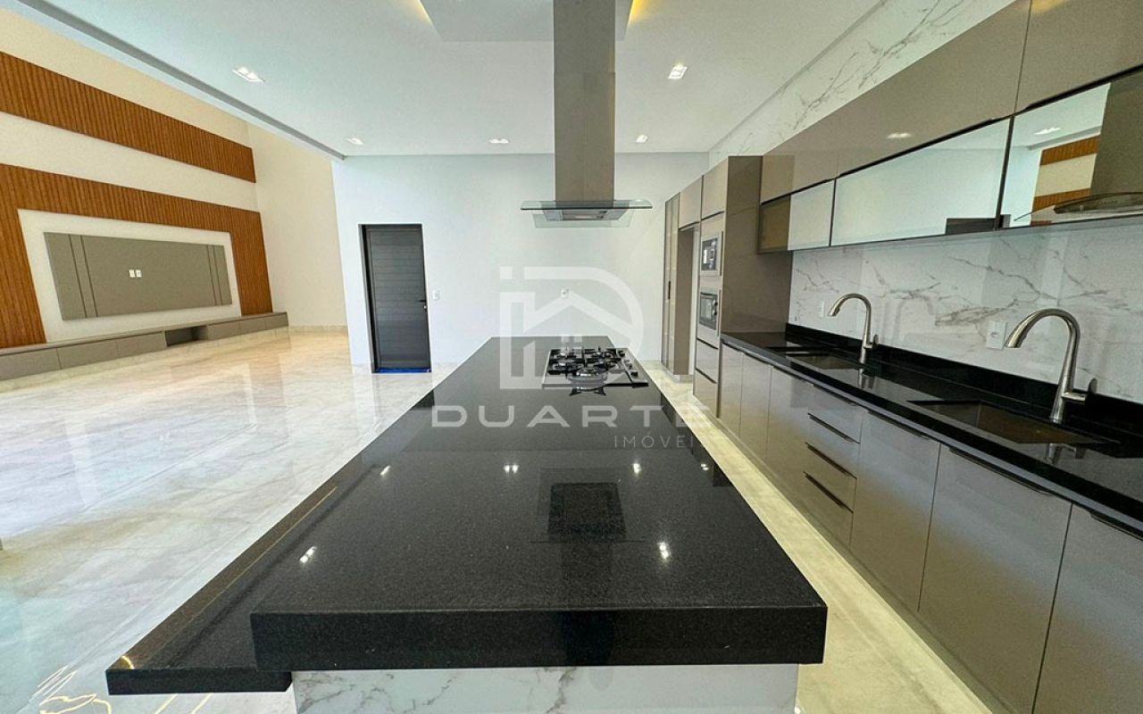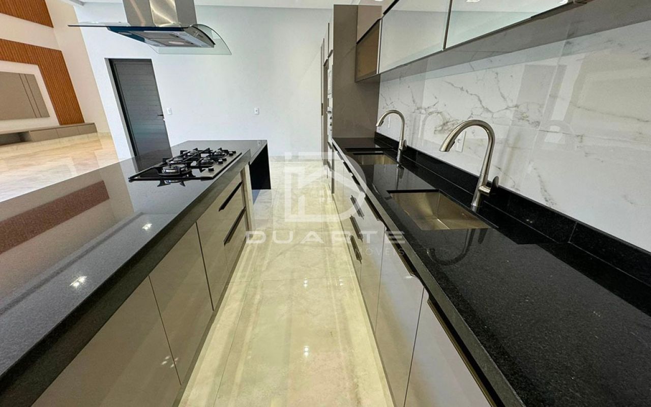 - Cozinha gourmet com ilha e duas cubas;
