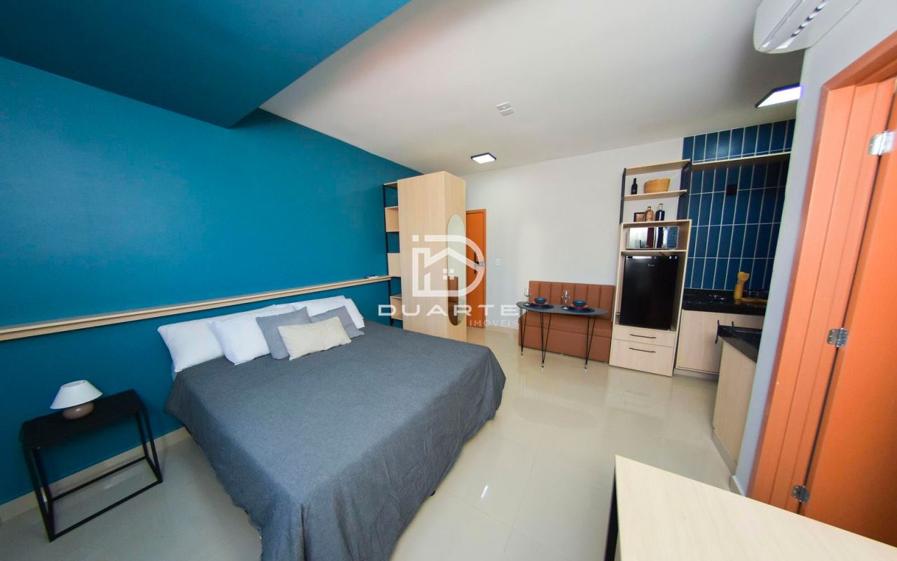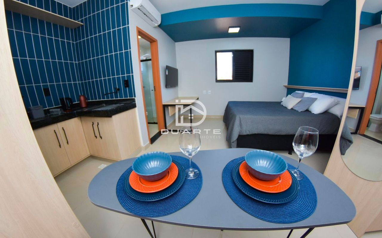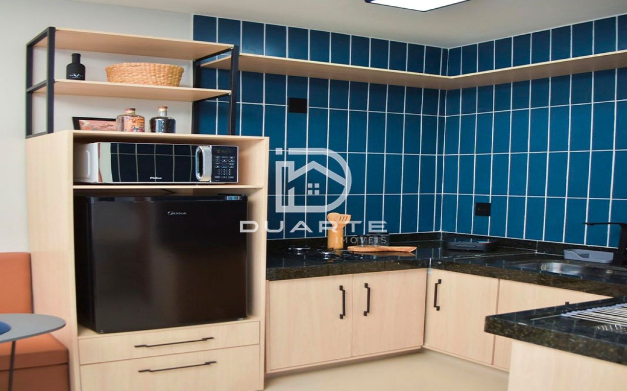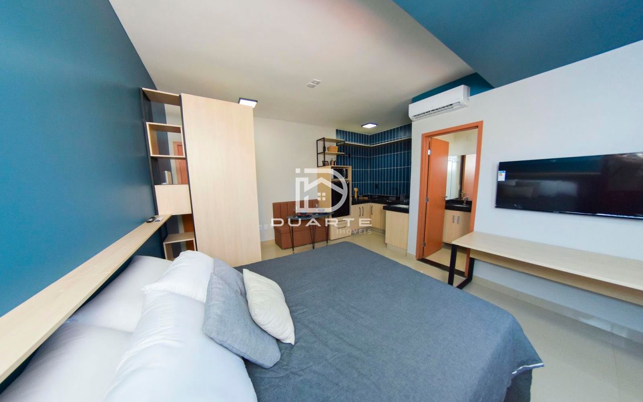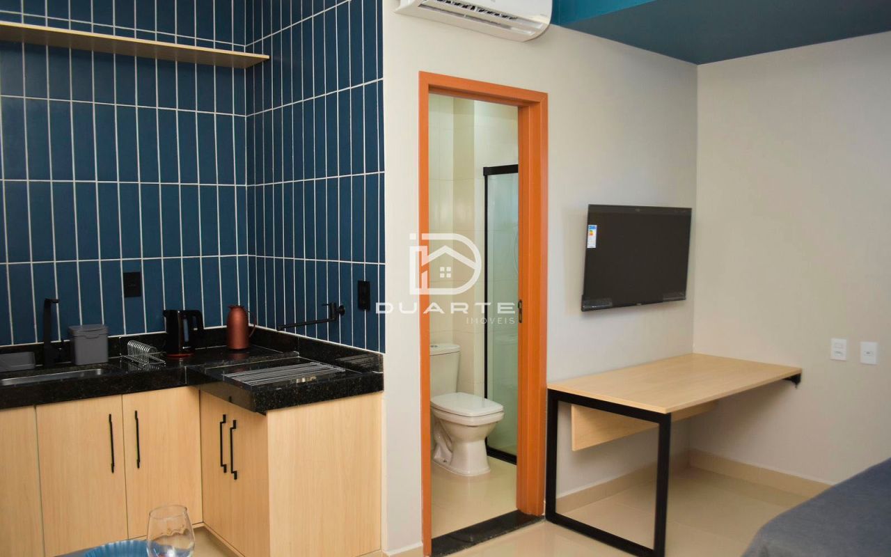 - Ambiente integrado: sala, quarto, cozinha e banheiro social;