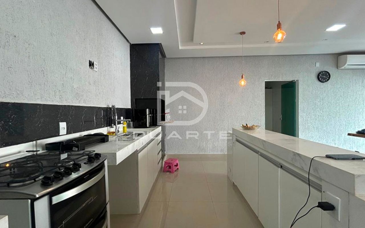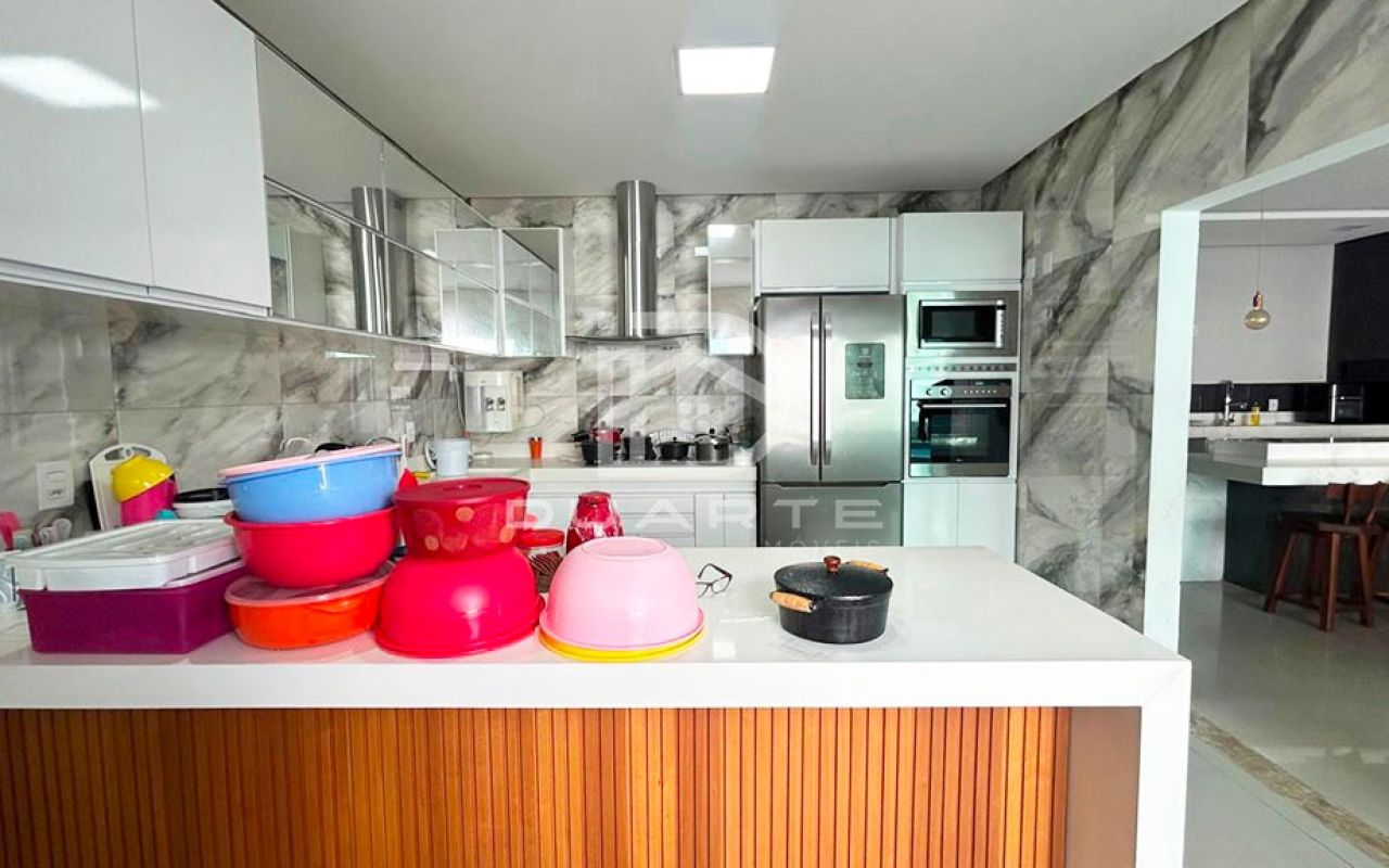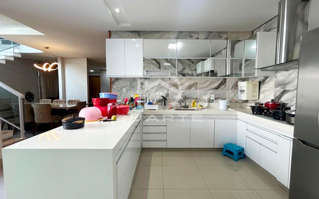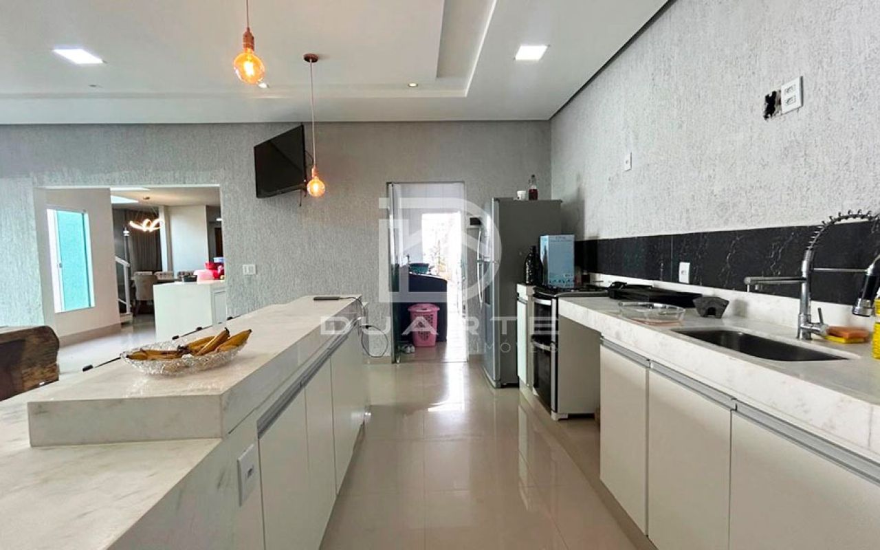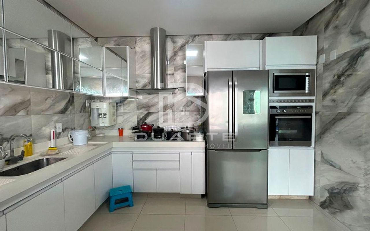 - Cozinha com pedra Quartzo branco com móveis planejados;
