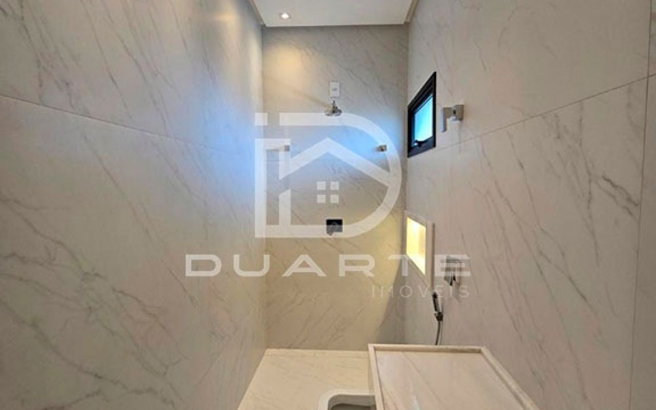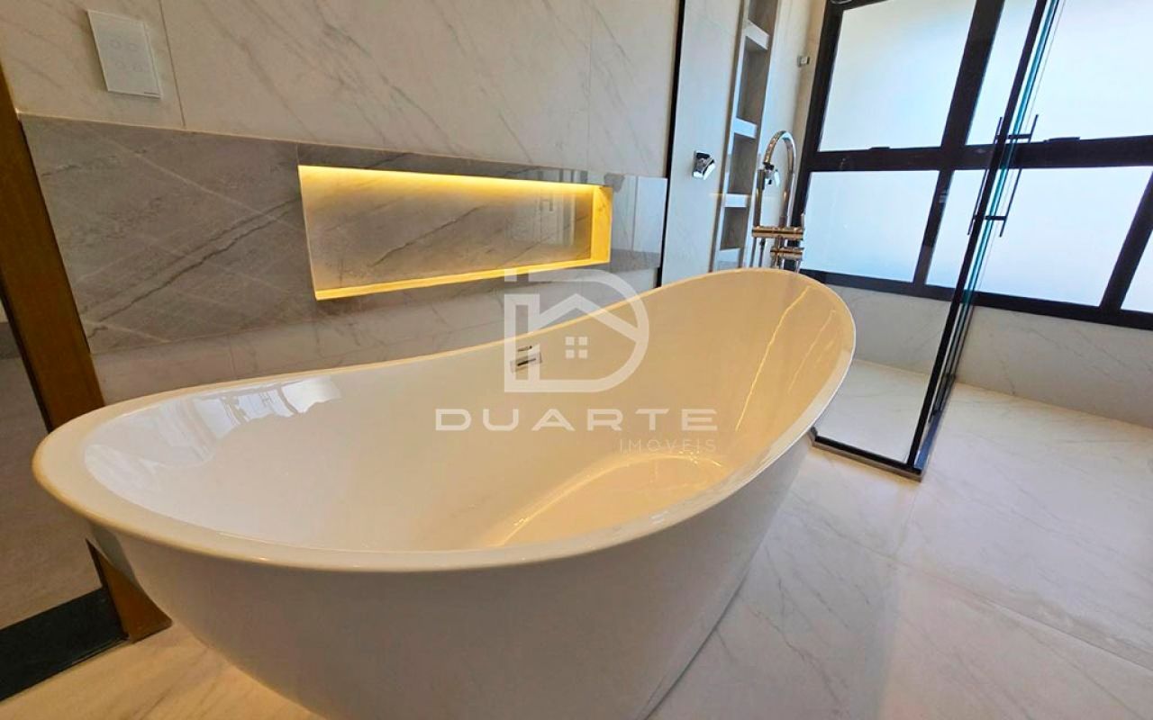 * 03 suítes, sendo 01 master com closet e banheiro com 02 chuveiros, 02 cubas e banheira;