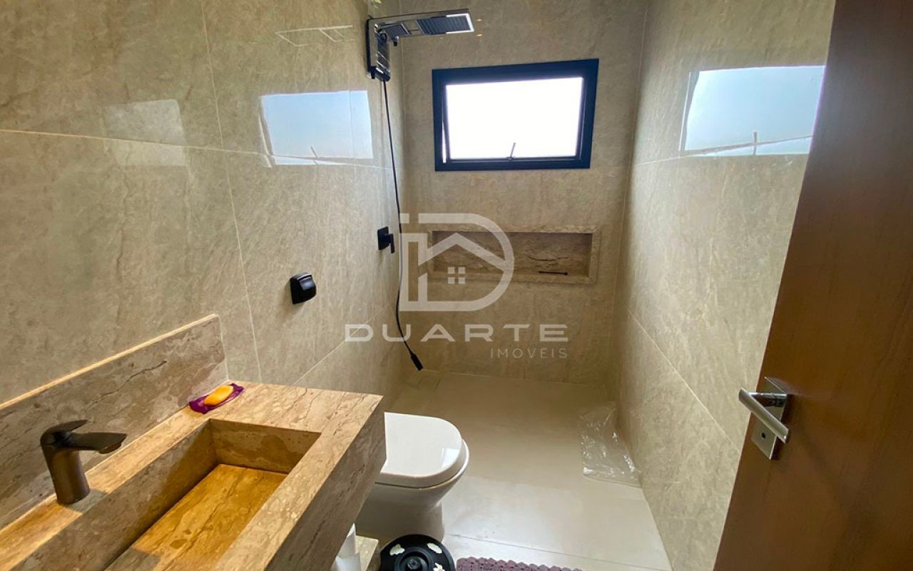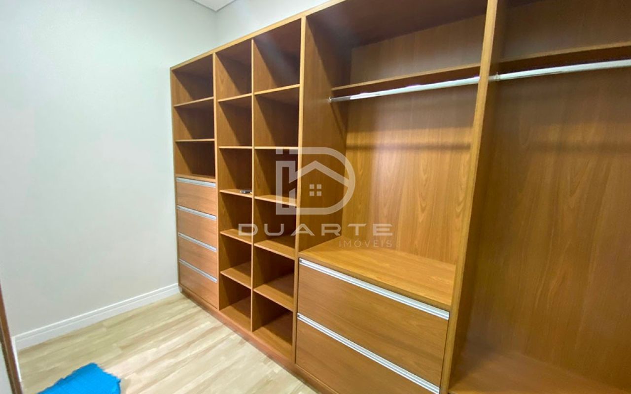 - 05 suítes, sendo 04 delas com closet (03 no piso inferior e 02 no piso superior);