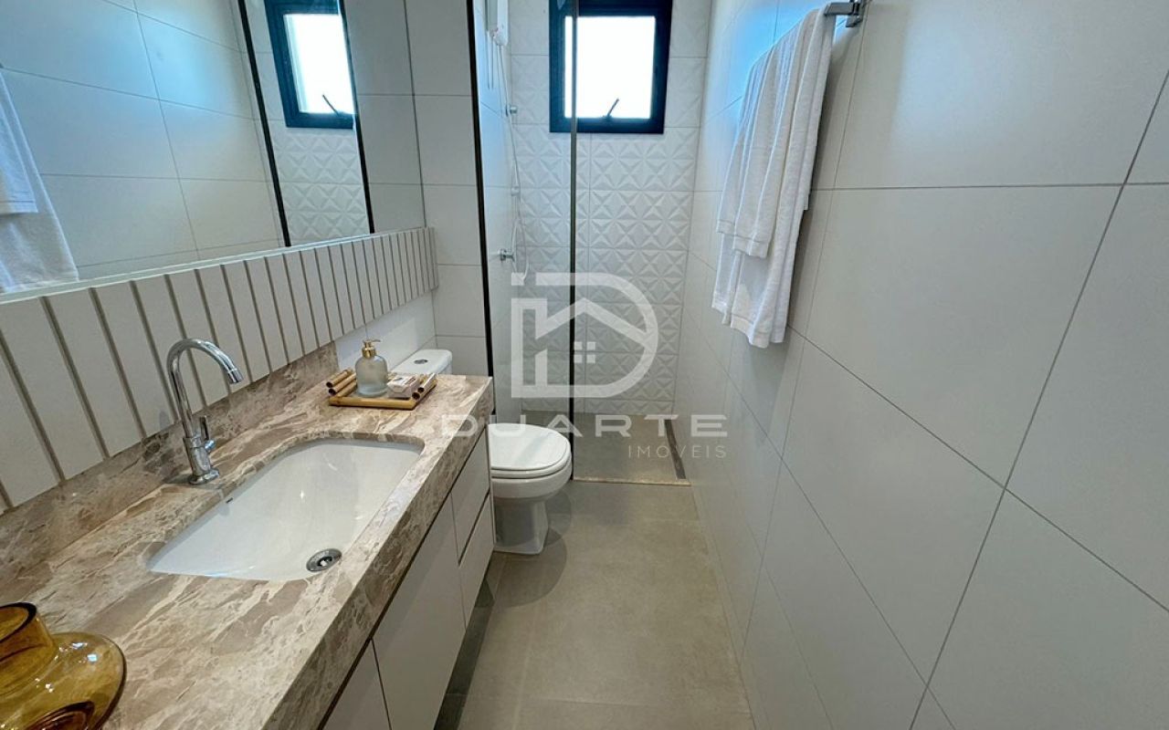 - Banhos revestidos com piso e parede em acabamento retificado;