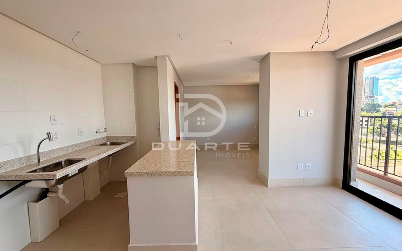 Ambiente integrado: quarto, banheiro social; sala e cozinha;