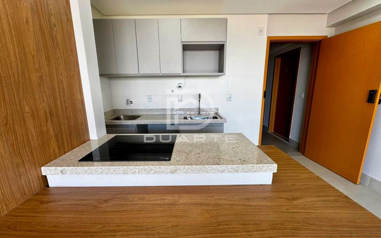 - Ambiente integrado de quarto, sala e cozinha;